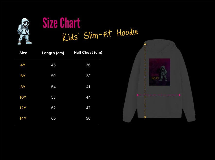Introducing our slim fit kids hoodie – the ultimate streetwear piece for next-gen trendsetters. Our hoodies combine bold graphics, funky prints, and an effortless vibe that makes a statement wherever you go.